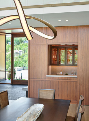 Outside, a pool deck is designed for both intimate family gatherings and large summer celebrations, featuring fire pits, a waterfall, and versatile shading. The primary suite upstairs is a sanctuary of tranquility with floor-to-ceiling windows and seamless integration with nature. Downstairs, a lively lounge with custom woodworking and playful lighting invites relaxed entertainment. Casa Cresta is a celebration of light, art, and architecture—a space that evolves beautifully through each Aspen season.